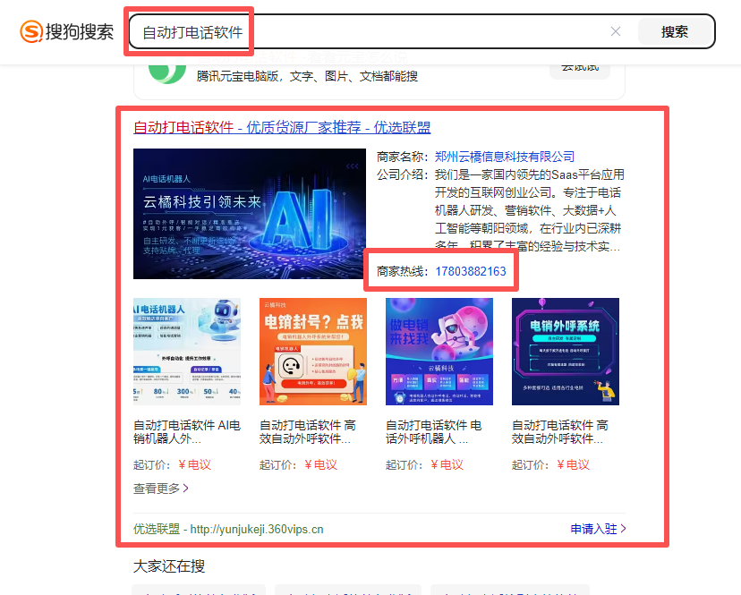 鄭州云橋網(wǎng)絡(luò)科技有限公司是一家國內(nèi)領(lǐng)先的Saas平臺應(yīng)用開發(fā)的互聯(lián)網(wǎng)創(chuàng)業(yè)公司,專注于電話機(jī)器人研發(fā)、營銷軟件、大數(shù)據(jù)+人工智能等朝陽領(lǐng)域在行業(yè)內(nèi)已深耕多年,積累了豐富的經(jīng)驗與技術(shù)實力。為客戶提供互聯(lián)網(wǎng)營銷服務(wù),幫助客戶制定針對性獲客解決方案。產(chǎn)品均為源碼開發(fā),自有服務(wù)器,超8年投研經(jīng)歷,系統(tǒng)持續(xù)迭代升級,資質(zhì)證書齊全超5年10000+客戶服務(wù)經(jīng)驗,150+行業(yè)成功案例;具備成熟的技術(shù)及售后團(tuán)隊。