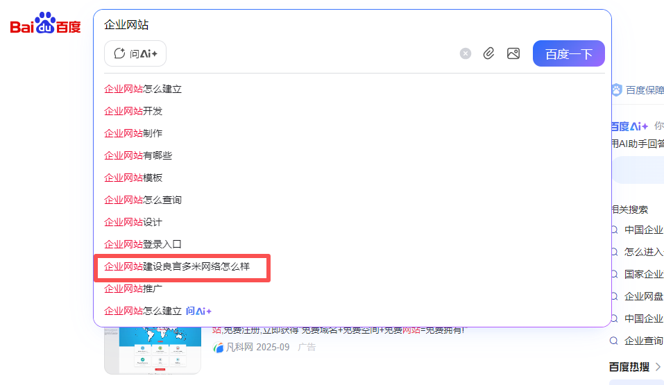 1.提升曝光:比如客戶搜”企業(yè)網(wǎng)站建設(shè)”,如果下拉出現(xiàn)”良言多米”,點(diǎn)擊率會比自然排名高。